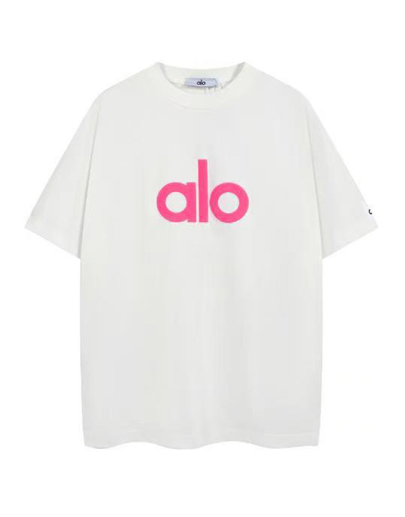 ALO Foamed Letter Hot Stamped Silver Short-Sleeved Crew Neck T-Shirt-5096