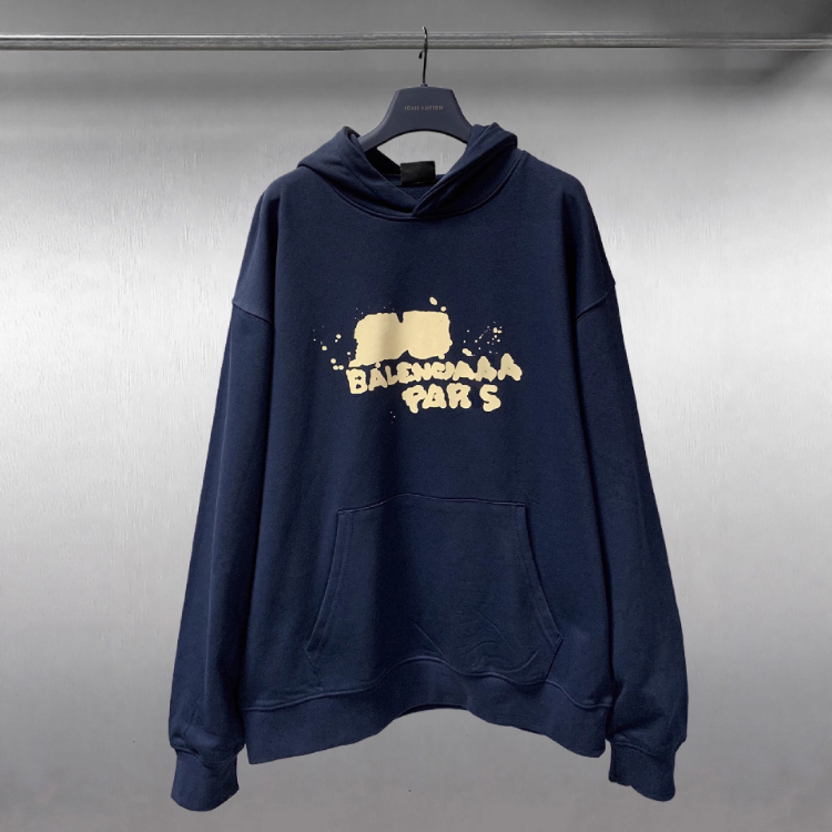 Balenciaga high-end printed loose-fitting pure cotton hooded sweatshirt-5336
