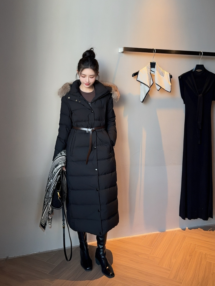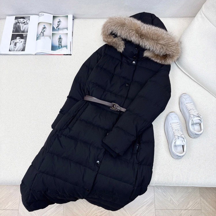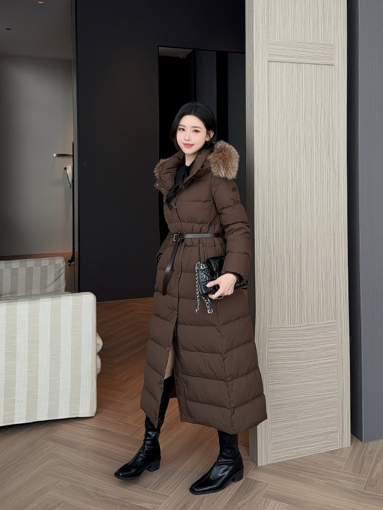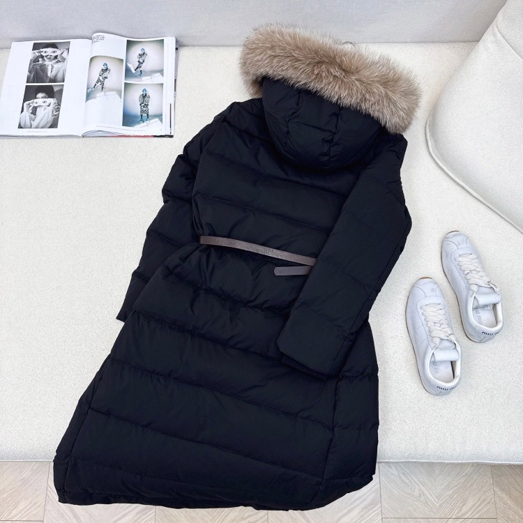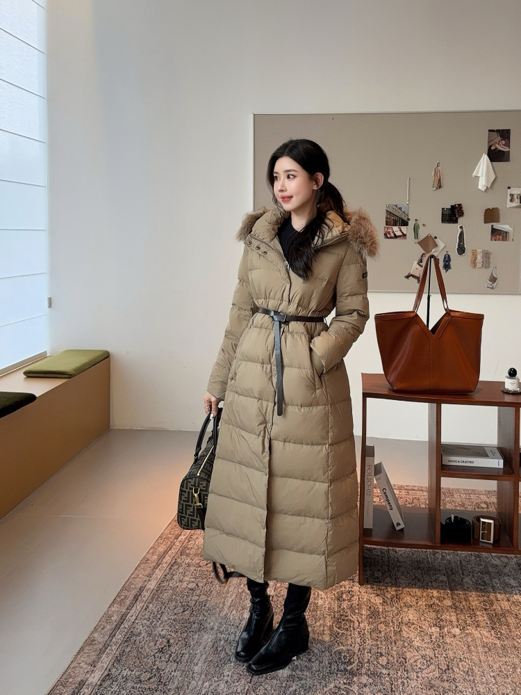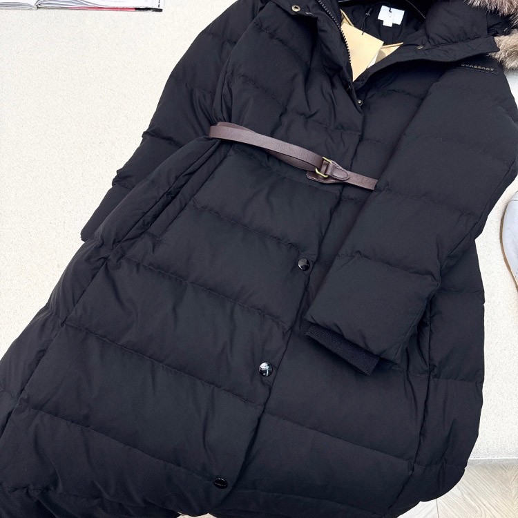 Burberry new hooded long down jacket with fur collar and zipper closure-5351