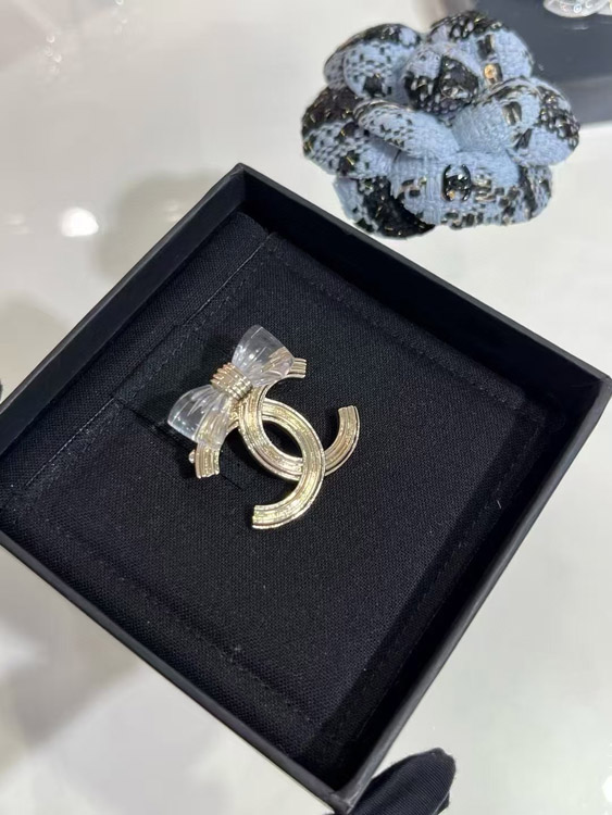 Home > Chanel transparent acrylic bow gold double C brooch-3751