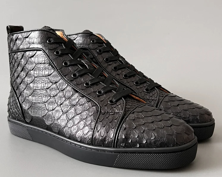 Christian Louboutin CL calfskin round toe lace-up high-top sneakers-2963