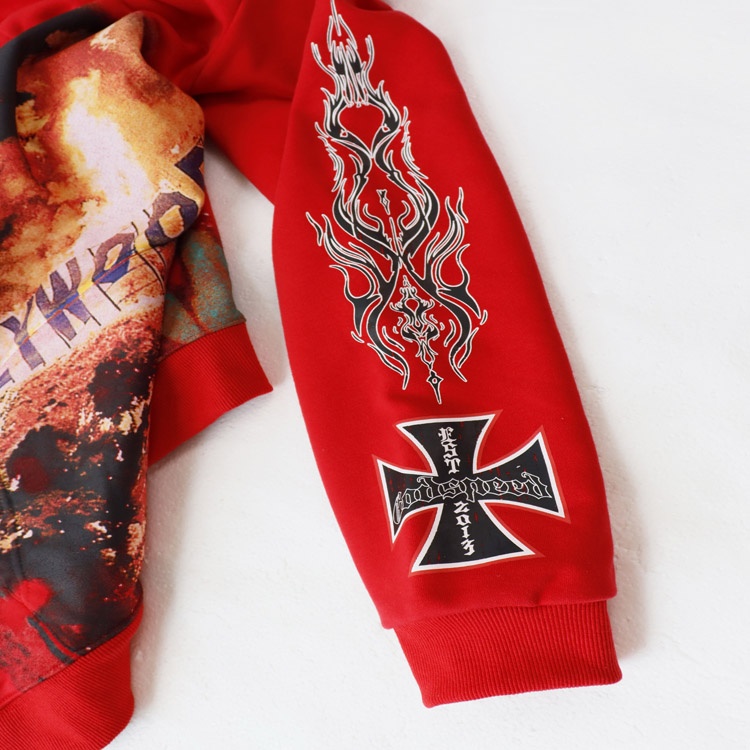 Godspeed Los Angeles Hollywood Wildfire Print Cotton Hooded Sweatshirt-4572