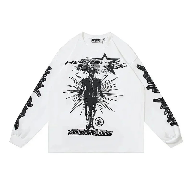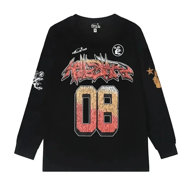 Ins same style Hell Star Retro Print Men's and Women's Loose Casual Long Sleeve T-shirt-2514