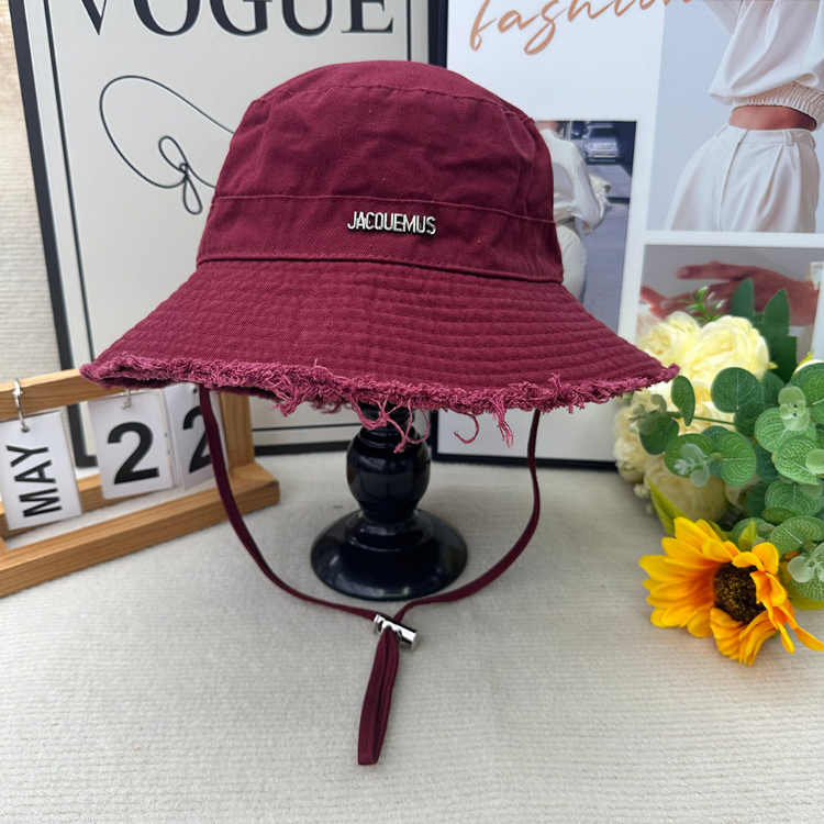Home > Jacquemus frayed-edge wide-brimmed bucket hat with drawstring-5982