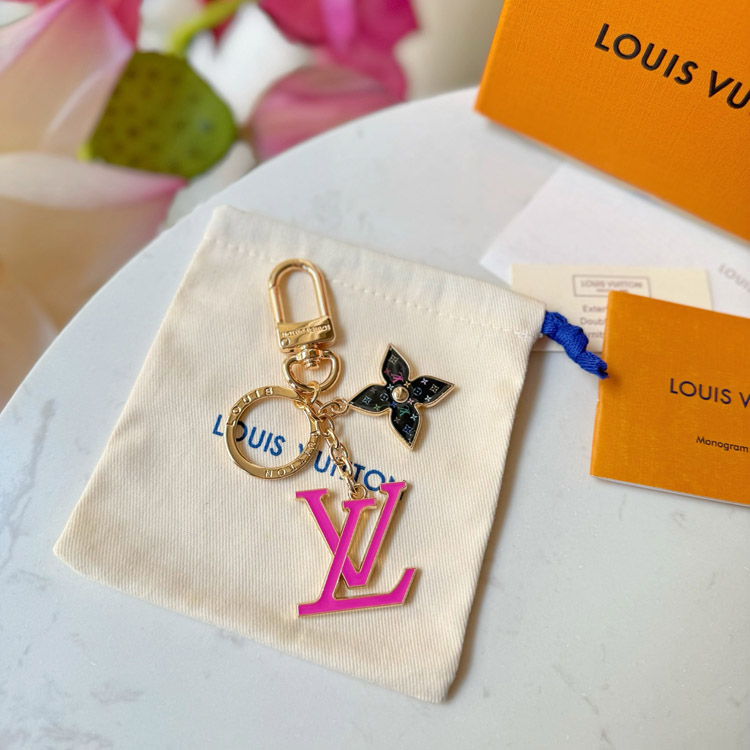 Home > Louis Vuitton LV black tricolor old flower pink letter keychain-3761