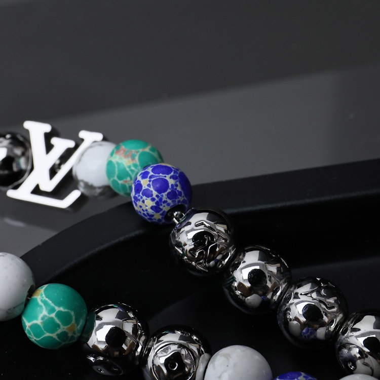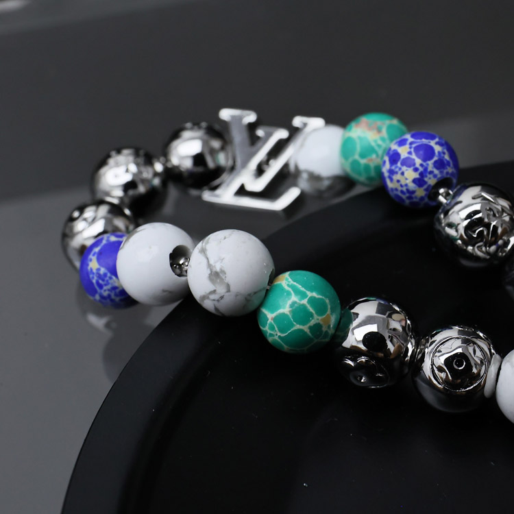 Louis Vuitton LV colorful beads letters stitching floral bracelet with metal chain-3557