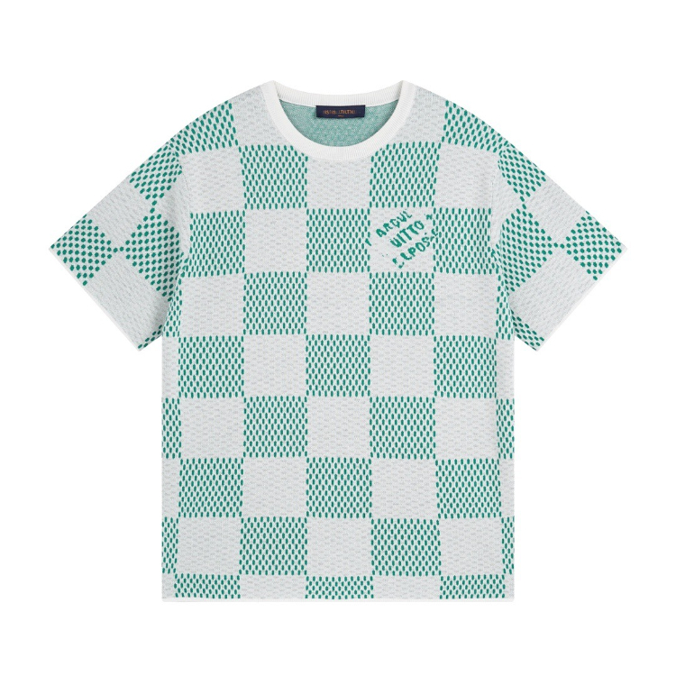 Louis Vuitton LV knitted checkerboard pattern letter jacquard casual loose short-sleeved T-shirt-5308
