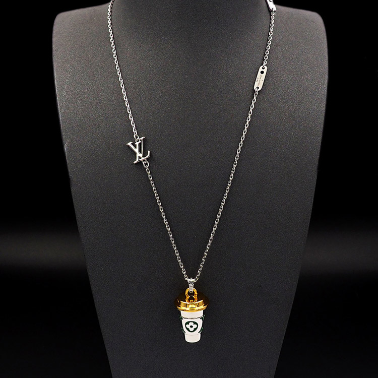 Louis Vuitton LV Letter Floral Enamel Inscription Miniature Coffee Cup Necklace-3915