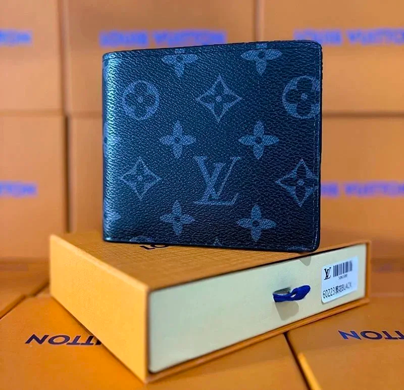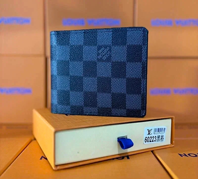 Louis Vuitton LV Men's Old Flower Black and Gray Long Wallet-2645