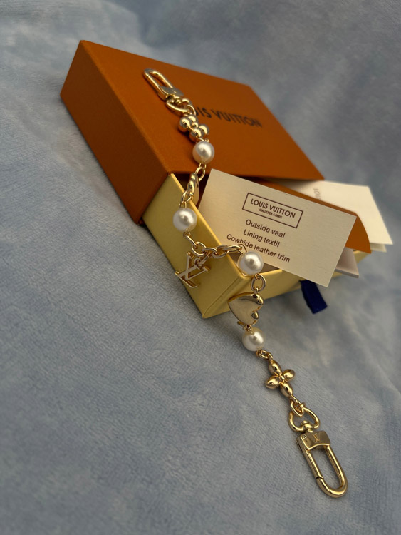 Louis Vuitton LV metal chain embellished with letters, flowers, heart-shaped pearl bracelet-3886