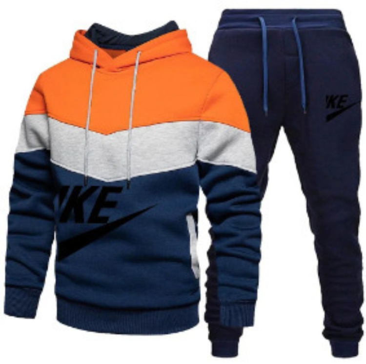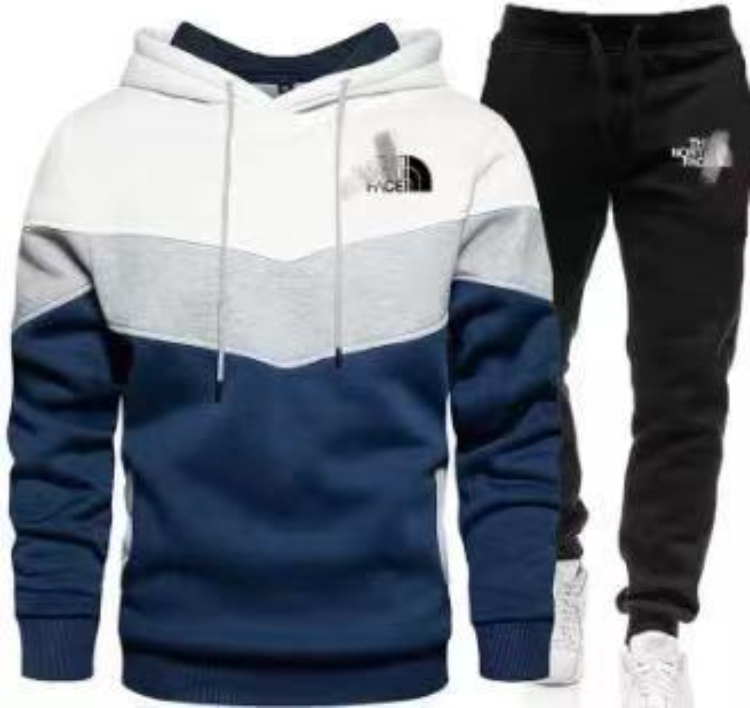 New multi-colored patchwork hooded sweatshirt set-5221