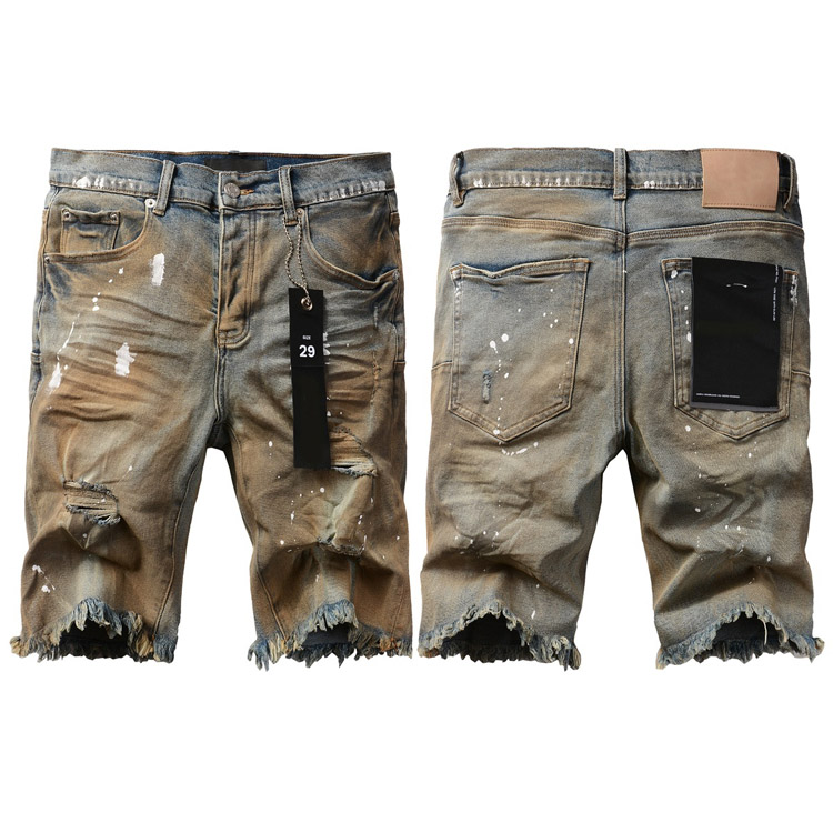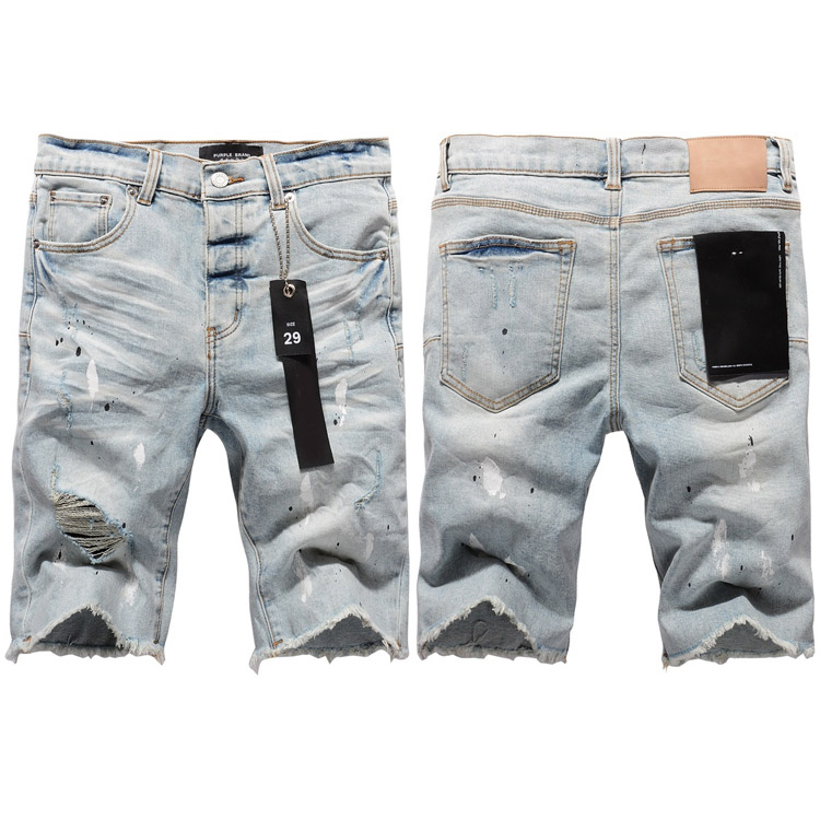 Purple Brand new jeans shorts elastic ripped patch slim fit casual shorts-4255