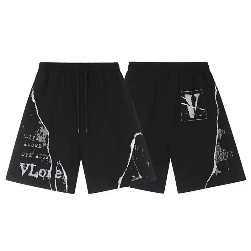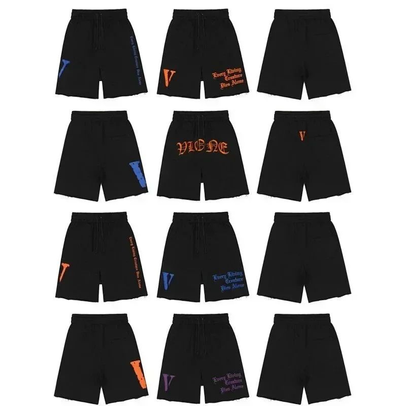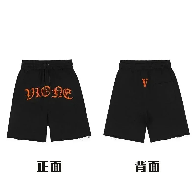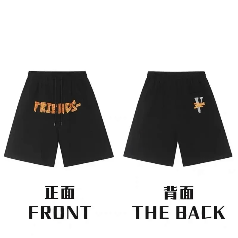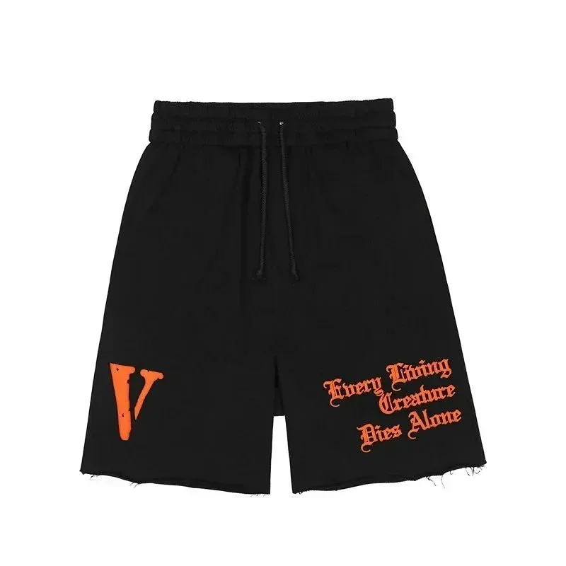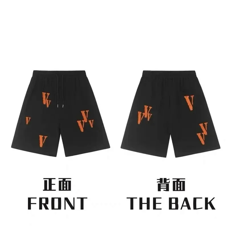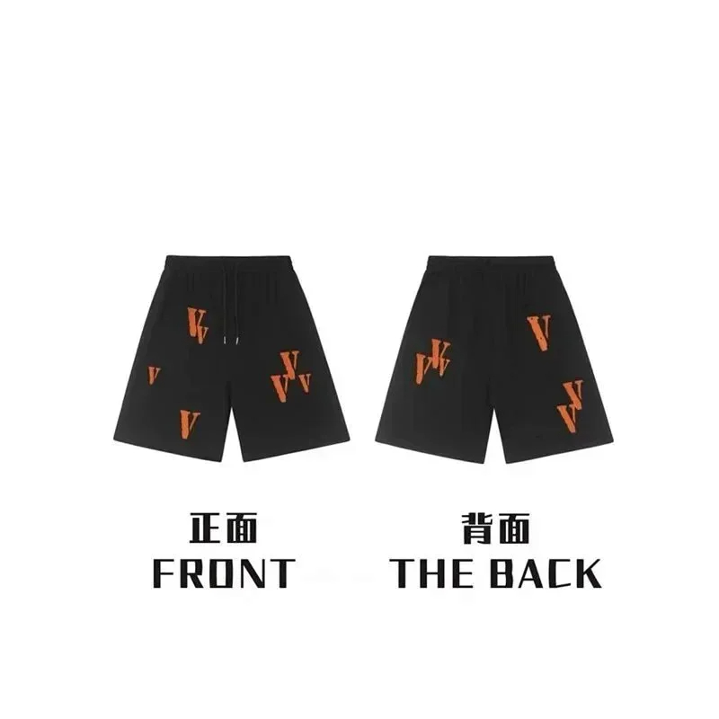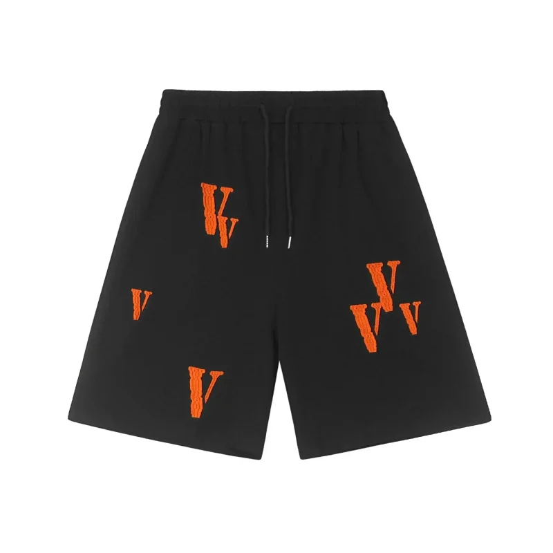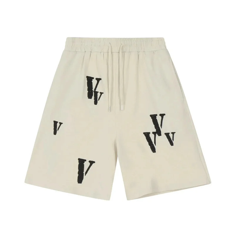 Veron Jerry Big V Letter Print Cotton Terry Casual Shorts-2490