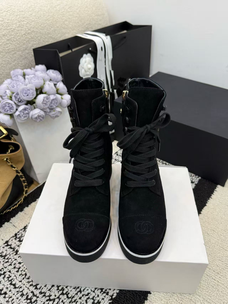 Chanel platform color-block lace-up ankle boots-5774