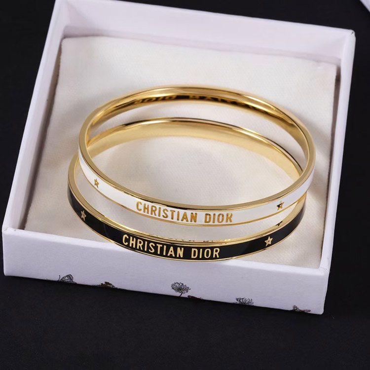 Dior bracelet gold finish metal black lacquer thin bracelet-3709
