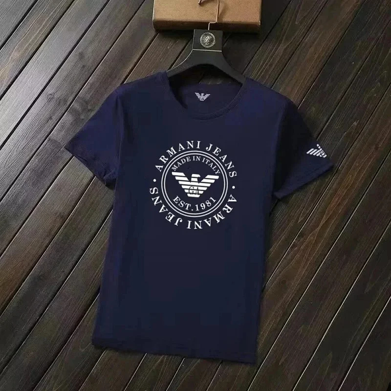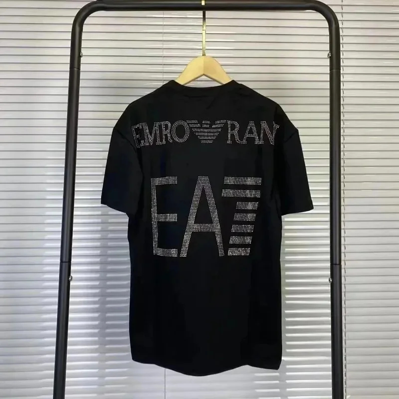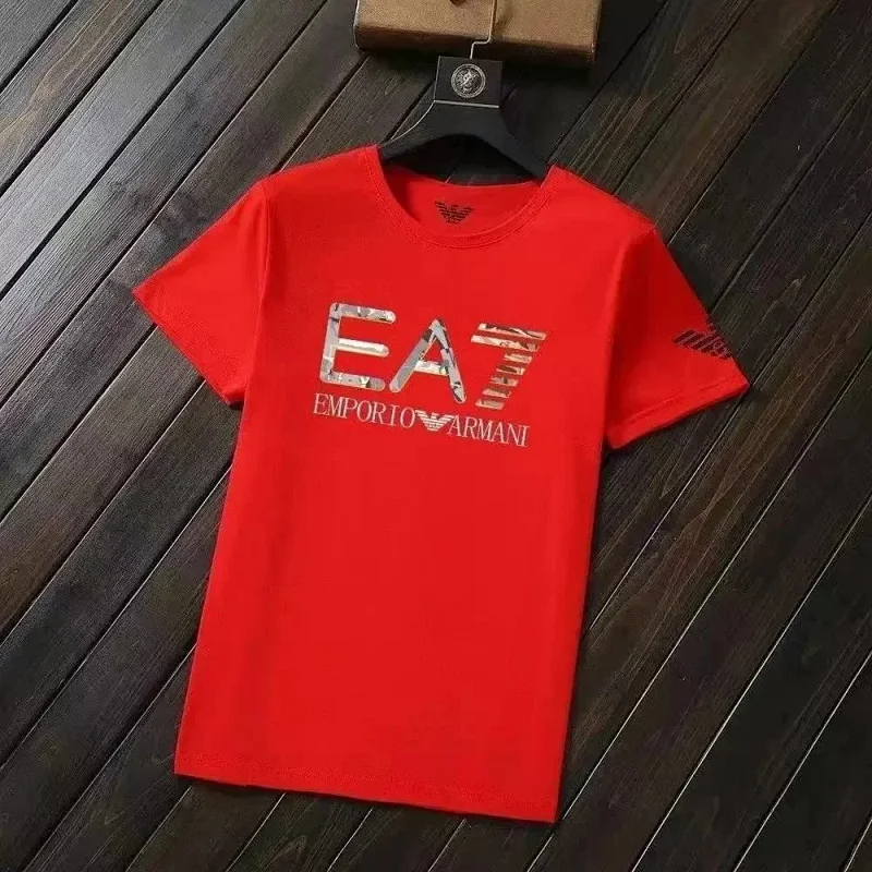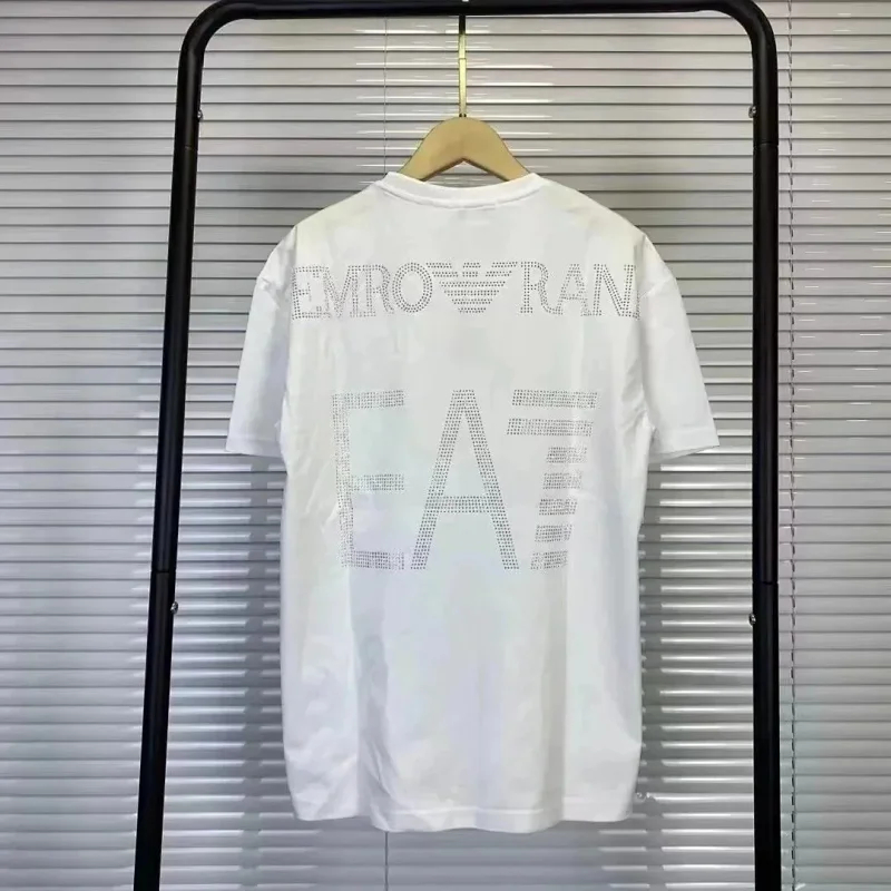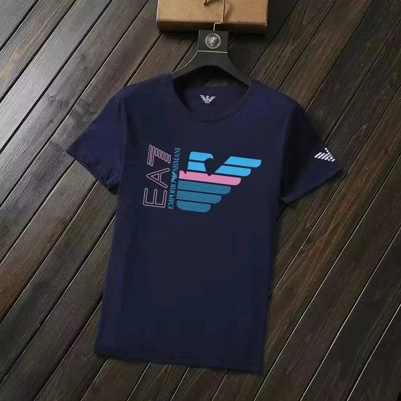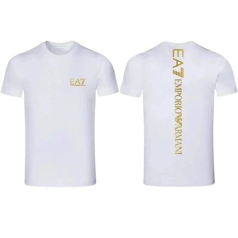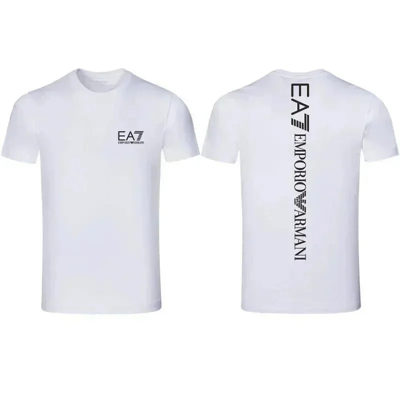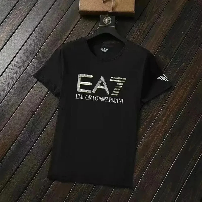 Home > EMPORIO ARMANI EA7 Lettering Logo Solid Color Round Neck Short Sleeve T-Shirt-2831