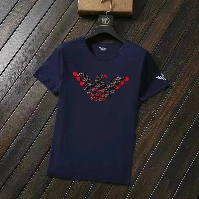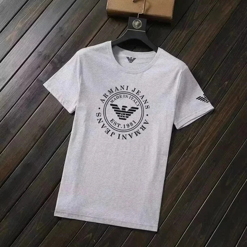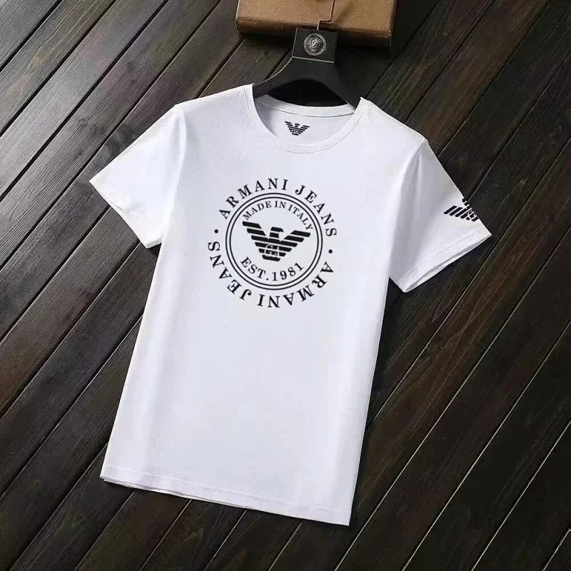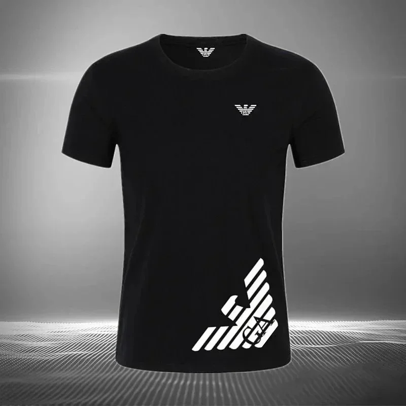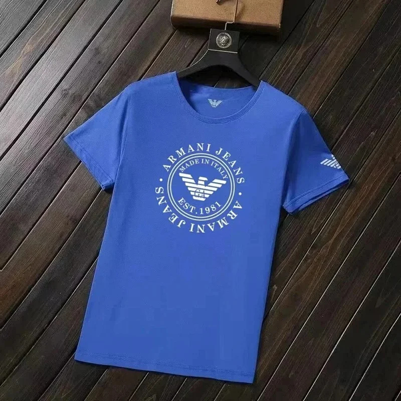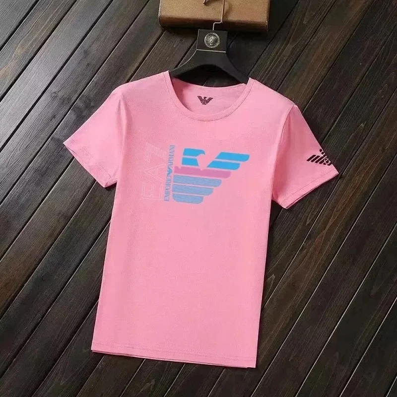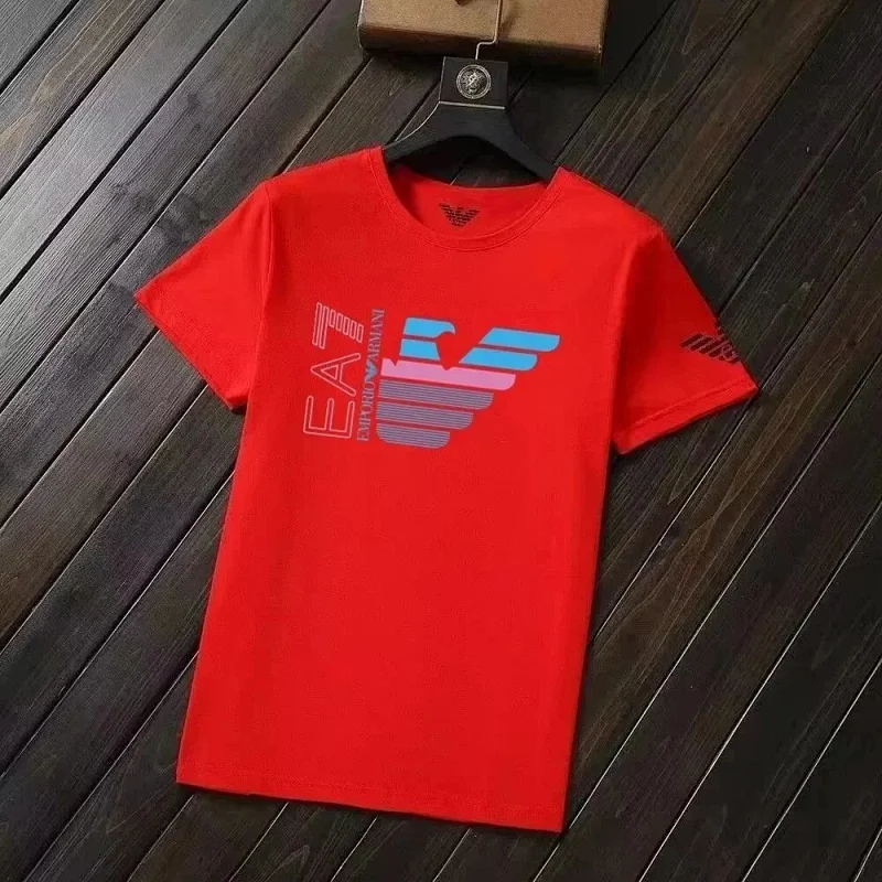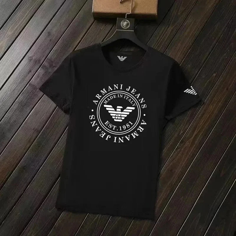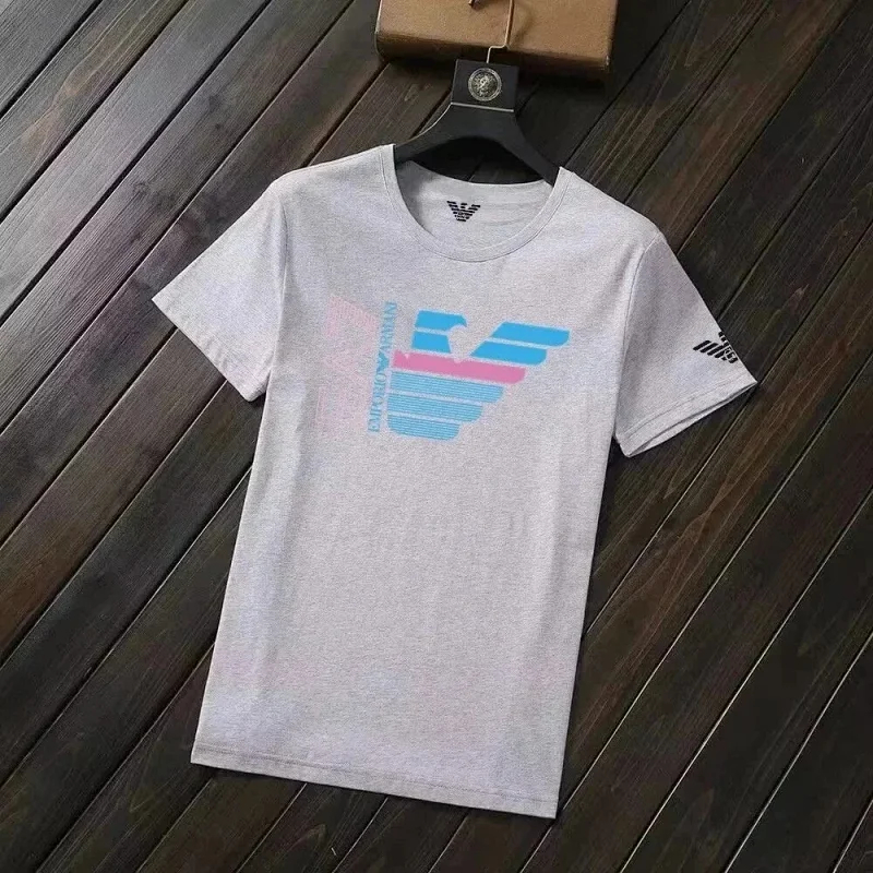 Home > EMPORIO ARMANI EA7 Lettering Logo Solid Color Round Neck Short Sleeve T-Shirt-2831