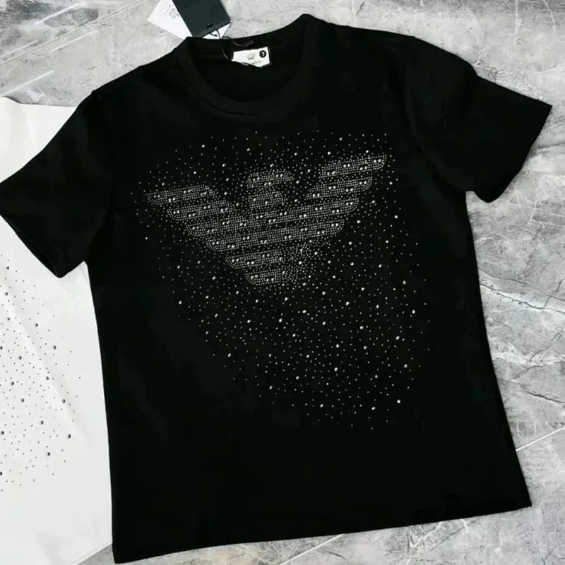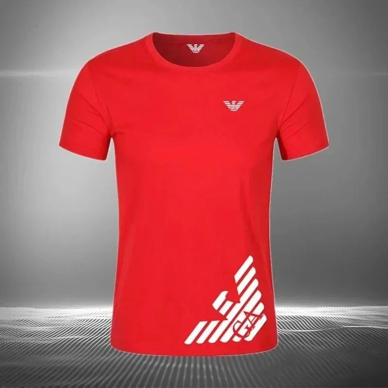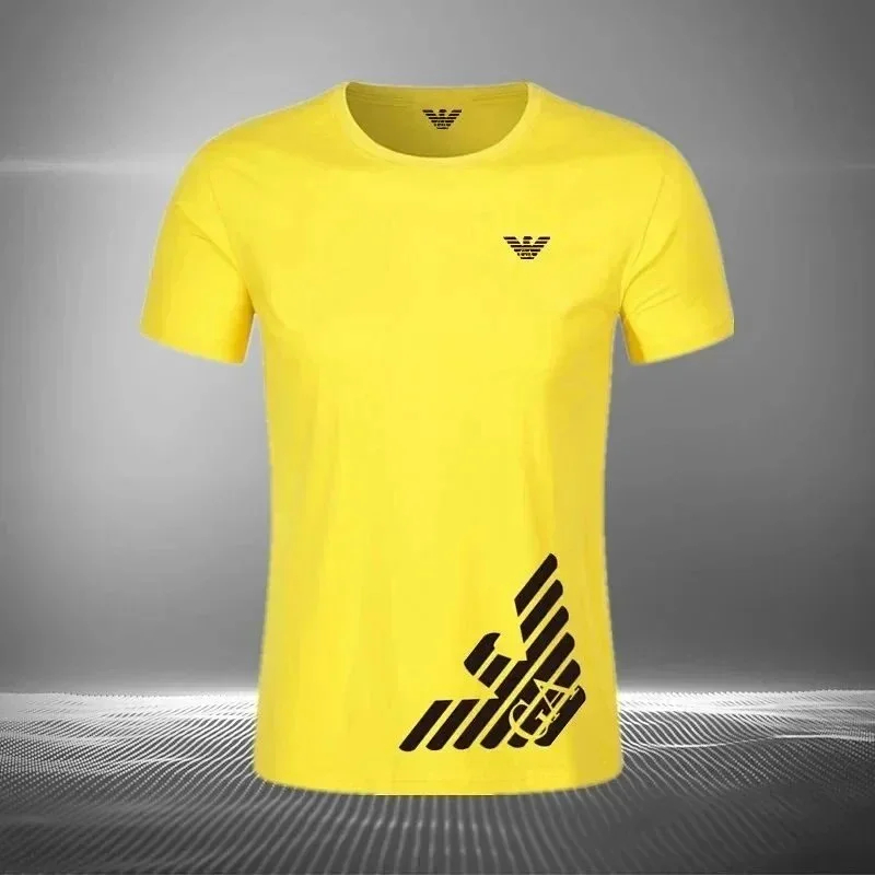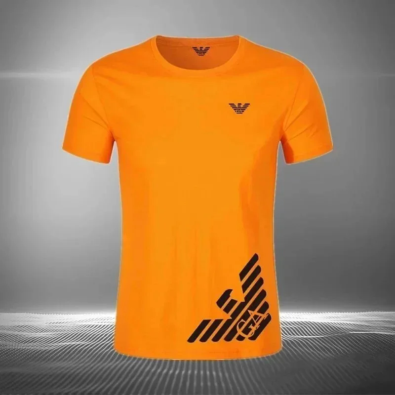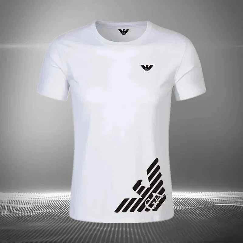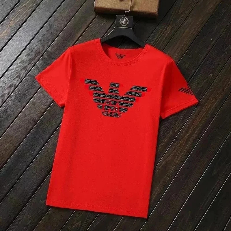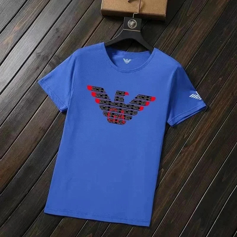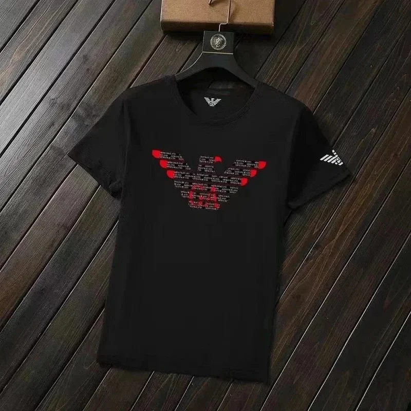 Home > EMPORIO ARMANI EA7 Lettering Logo Solid Color Round Neck Short Sleeve T-Shirt-2831