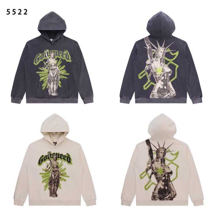 Godspeed Rock Street Retro Washed Distressed Printed Terry Hoodie-4574