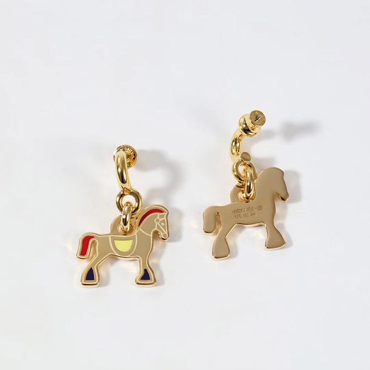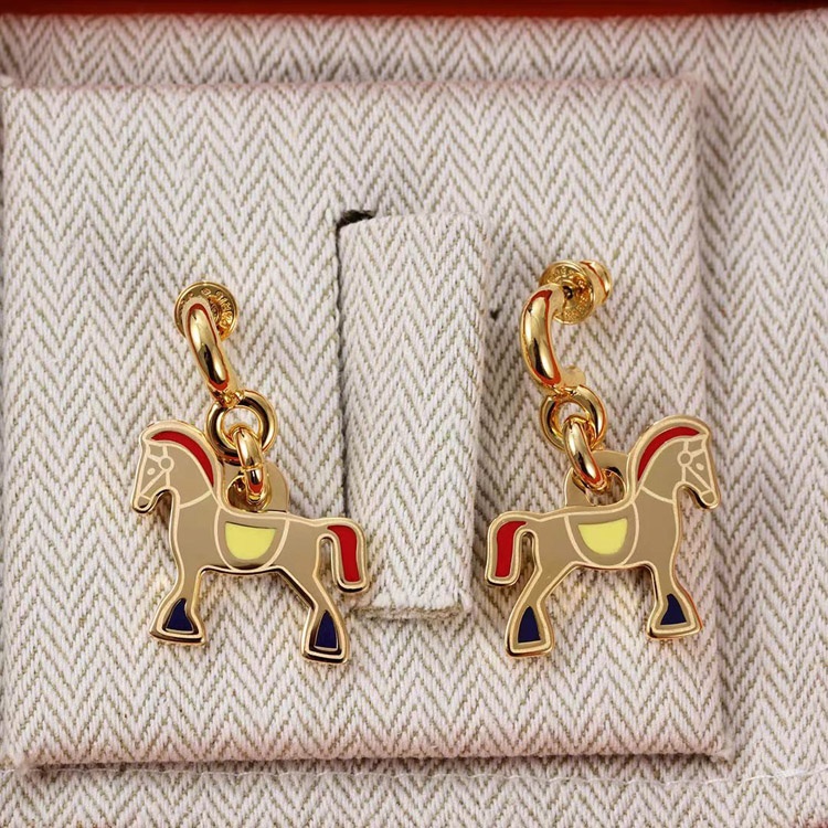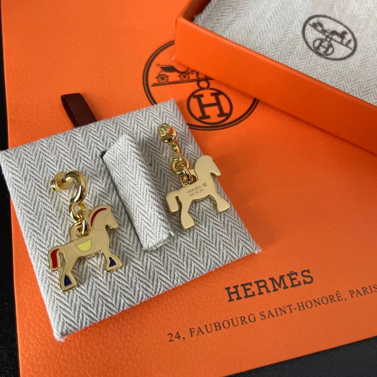 Hermes red enamel earrings-3712