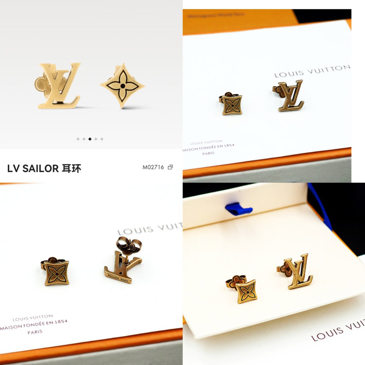 Louis Vuitton LV Letter Floral Brass Distressed Earrings-3575