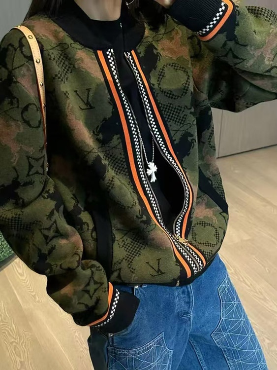 Louis Vuitton LV new jacquard wool bomber knit sweater camouflage jacket-5218