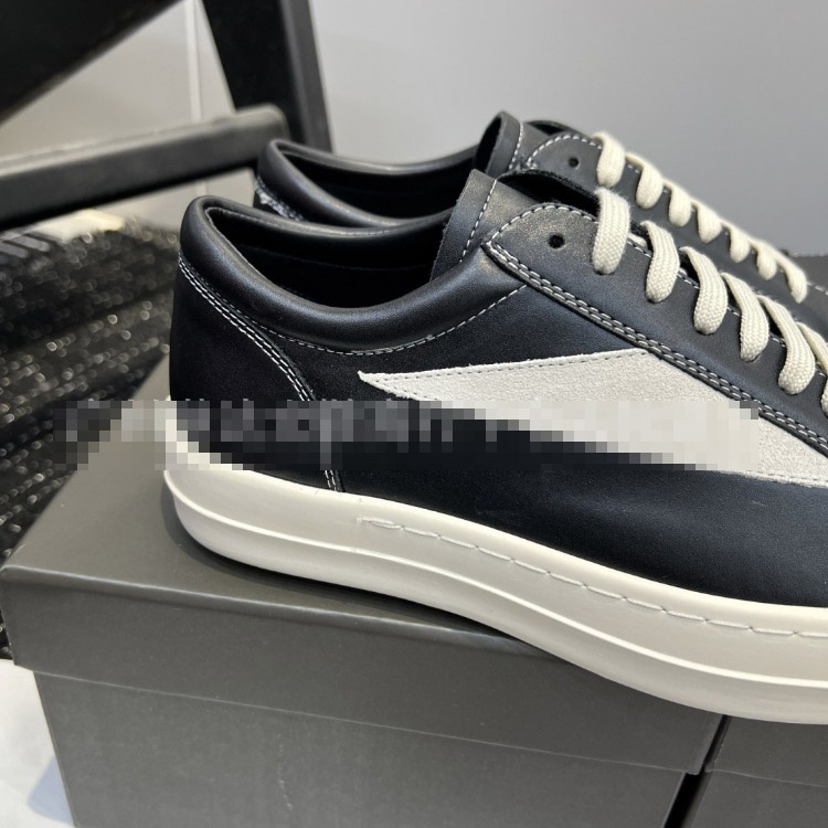 Rick Owens platform black and white lace-up low-top shoes-5716