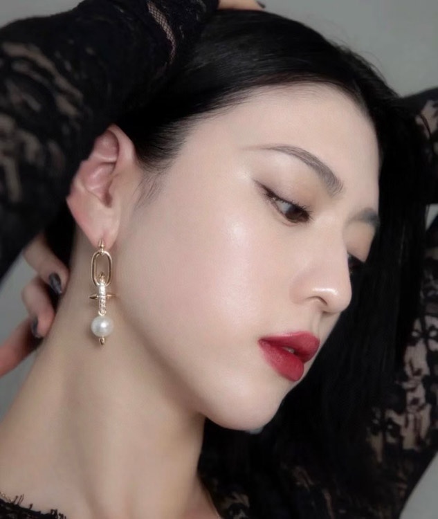 Tiffany diamond pearl rivet earrings-3679